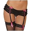 This sheer, strappy crotchless panty boasts black satin bows on front and back. Silky Smooth Microfiber for Fit and Comfort.