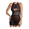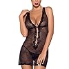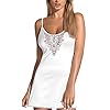 Avidlove Lingerie V Neck Satin Lace Chemise Nightwear featuring sheer lacy cups, adjustable criss-cross straps, a low backside, and short hemline. Comes with satin G-string.