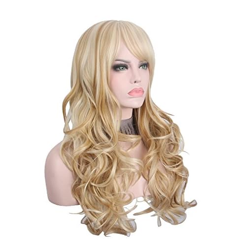 The Anxin Medium Long Blonde Wig with Bangs is made of Top Quality Heat Resistant Synthetic Fiber.Length (appr.): 65CM Weight (appr.): 210G