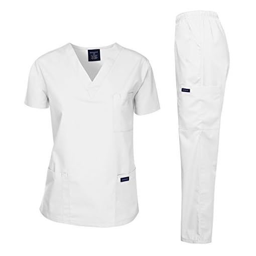 Dagacci Medical Uniform Scrub Unisex Set, Woman and Man Classic Fit V-Neck Top, Three Side Cargo Pockets Pants