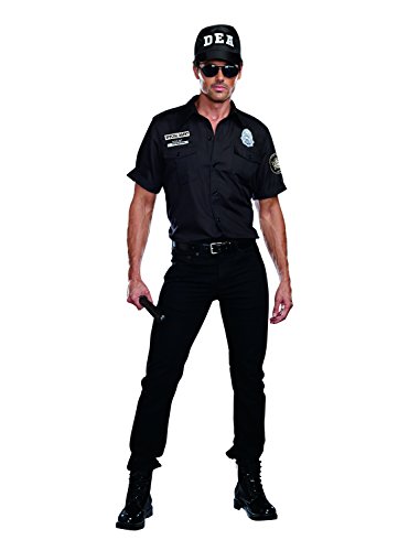 Dreamgirl Men's DEA Officer Phil My Pockets Costume - This DEA agent hated to be rude, but to do a proper search, his suspects needed to be nude. Dangerous liaisons await up ahead when you raid the party in this black police shirt with DEA patches, DEA hat and "agent Phil my pockets" nameplate.- Official looking DEA shirt with patches
