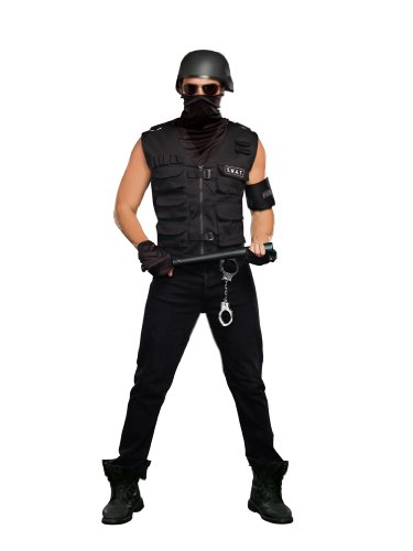 Dreamgirl Men’s Special Ops Costume – This Special Ops cop loves to play rough. Black heavy duty vest has bullet holders, utility pockets, SWAT Police back screen print and special Swat patch.