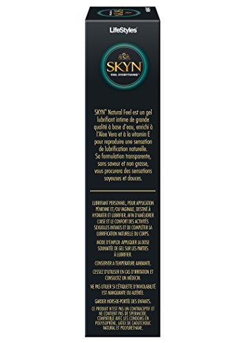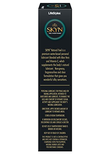 The LifeStyles SKYN Natural Feel Personal Lubricant is a premium water-based personal lube blended with aloe vera and Vitamin E to create a gentle, moisturizing sensation.- Water-based personal lubricant blended with Aloe Vera and Vitamin E to supplement the body's natural lubrication