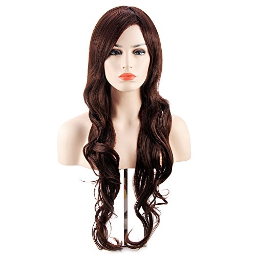 MelodySusie Dark Brown Curly Wig, 34 In With Free Wig Cap