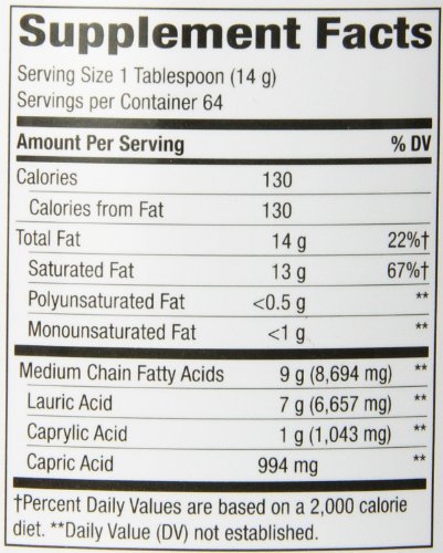 - Contains 62% MCTs (medium chain triglycerides) See Supplement Facts for total fat and saturated fat content
