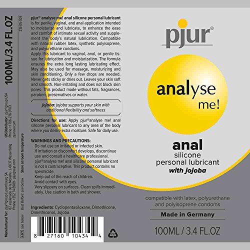 pjur Analyse Me Silicone Based Anal Lubricant is for the penile, vaginal and anal application intended to moisturize and lubricate, to enhance the was and comfort of intimate sexual activity and supplement natural lubrication. Compatible with natural rubber latex, synthetic polyisoprene, and polyurethane condoms.