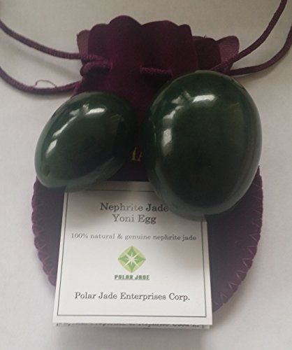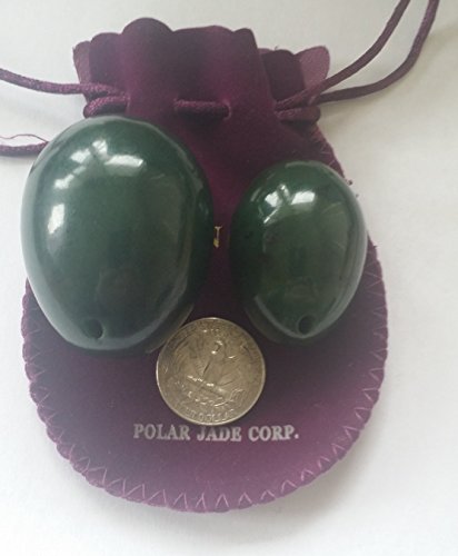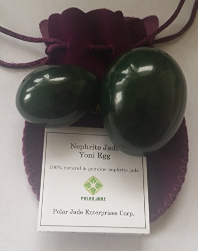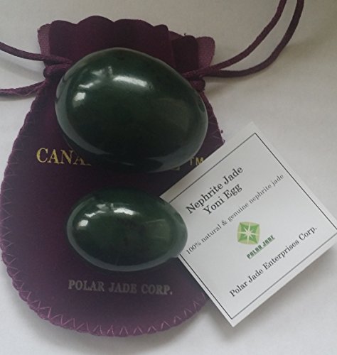 GENUINE NEPHRITE JADE: Made of 100% natural and genuine nephrite jade. Manually polished with outstanding finishing. Without any chemical treatment or dyeing. 9 out of 10 "jade eggs" on the market are actually fake jades or jade simulants made of serpentine or other translucent marble stones. Nephrite jade is very solid and harder than even steel, and is heavier than jade simulants or fake jades, makes it perfect for yoni egg.Comes with packing pouches and certificates of authenticity.