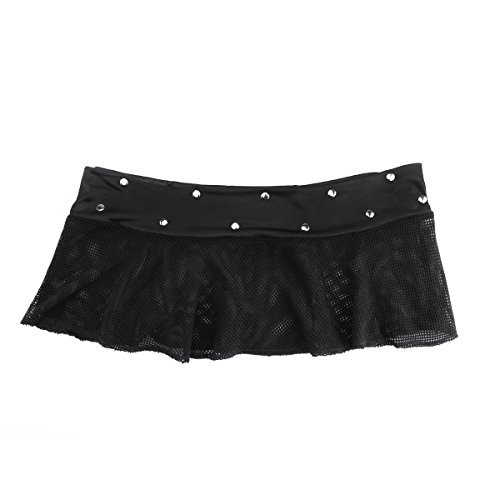 SeClovers Mesh Lingerie Set - Halter Top, Mini Skirt, Thong - Black, M