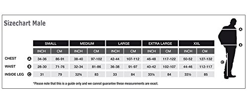 Size M: Chest: 38-40 inch, Waist: 32-34 inch, Inside Leg: 33 inch, Lightweight material for comfort avoids overheating