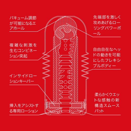 With the adoption of a flexible body, you are free to enjoy 360° sensations at the tip of your shaft! Interchange between back-and-forth, right-and-left, and rolling motions for a completely unique experience!