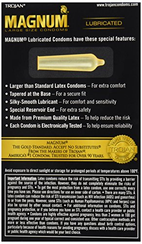Trojan Magnum Large Size Lubricated Condoms – The Gold Standard in comfort and protection.- Larger than standard latex condoms for extra comfort