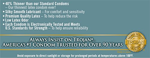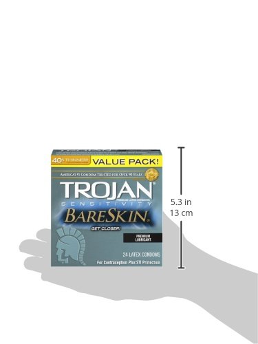 Trojan Sensitivity Bareskin Lubricated Latex Condoms are specially designed to help you feel closer – and get closer! Trusted for more than 90 years, Trojan is America’s #1 Condom!Caution: This product contains natural rubber latex which may cause allergic reactions. Avoid exposure to direct sunlight or storage for prolonged periods at temperatures above 100 degrees F.